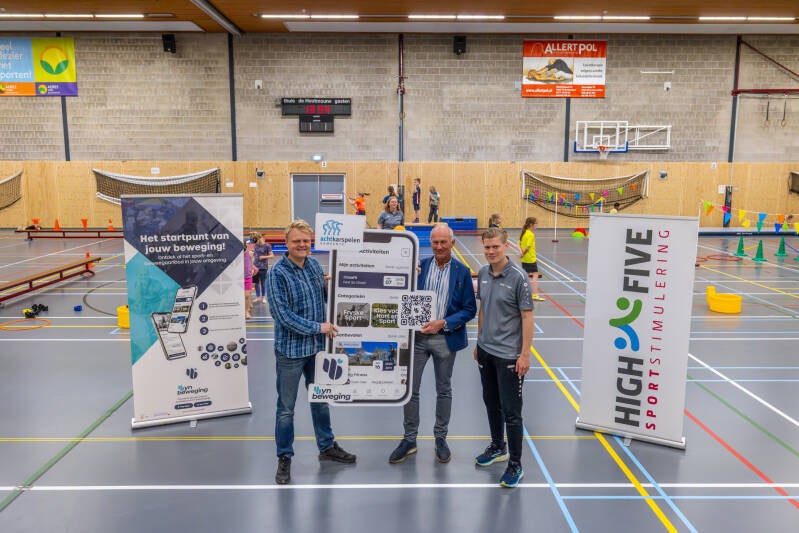 Tijdens de sport- en spelinstuiven in Buitenpost heeft wethouder Harjan Bruining de vernieuwde website van High Five Sportstimulering feestelijk gelanceerd!